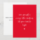 Nuestra tarjeta de vacaciones "Ten Yourself A Merry Little Navidades", "Deja tu corazón ser ligero", está emparejada con un corazón blanco diminuto sobre un fondo rojo que incluye un mensaje personal al revés.