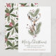 Envíe sus más sentidos deseos de vacaciones con esta carta de Navidades rústicos con un ciervo color agua rodeado de ramas de pino suaves y pequeñas flores de invierno. El mensaje "Feliz Navidad" está escrito en un guión elegante sobre el nombre de tu familia, con un cálido saludo de temporada debajo. Este diseño inspirado en la naturaleza ofrece un ambiente tranquilo y minimalista, perfecto para los amantes de los animales de bosque y de una agradable y acogedora estética vacacional.