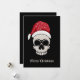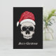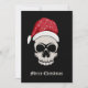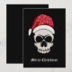 Tarjeta de vacaciones con Feliz Navidad y un cráneo con sombrero de Santa. El gorra está decorado con cráneos, huesos y artículos de Navidad. Añade tu mensaje de vacaciones y nombres en la parte posterior. Vea la coordinación de artículos en nuestra tienda.