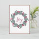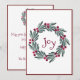 Tarjeta de vacaciones de la tipografía "Alegría" de bonito para toda tu familia y amigos. La corona de pino de vacaciones marca la tónica de una carta de bienvenida sencilla y dulce.