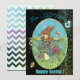 Festiva Tarjeta negra plana de Pascua con conejito y polli