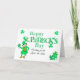 Una divertida tarjeta de felicitación del día de San Patricio con arte de palabras para que la personalices con el nombre/s del destinatario/s con un duendecillo travieso, sosteniendo un ramo de tréboles y hay racimos de tréboles en cada esquina. La felicitación de la portada es 'Feliz día de San Patricio' con las palabras 'San Patricio' llenas de patrones verdes y blancos. A continuación, en letra script negra sobre fondo blanco, dice 'Deseándote la suerte de los irlandeses' seguido de un espacio para que añadas la personalización. También puedes hacer cambios en el mensaje del interior según sea apropiado o eliminarlo por completo si lo prefieres.