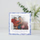 Comparte tu alegría de vacaciones con esta tarjeta única de Navidades de copos de nieve azul cuadrado personalizada. A diferencia de las tarjetas rectangulares tradicionales, este diseño presenta una forma cuadrada distintiva que la distingue. La tarjeta le permite fácilmente personalizar la foto y el texto para crear un saludo significativo para sus seres queridos. El elegante borde azul de copos de nieve añade un encanto festivo y invernal, haciendo de esta carta un lugar perfecto para las vacaciones. Ya sea que lo envíe a amigos, familiares o colegas, esta tarjeta de personalizable dejará una impresión duradera. Personalízalo con la foto y el mensaje de tu familia para un saludo de vacaciones verdaderamente único.