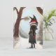 Tarjeta Pintada a Mano de Zorro de Invierno de Fiesta. Pintura suave y única en pastel diseñada por mí, tarjeta de temporada. Zorro de cuento en un camino invernal vestido con abrigo y falda negros. Hallazgo raro. ¡Consigue hoy!