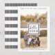 Bienvenidos al año que viene con estilo y sinceridad usando esta tarjeta de Año Nuevo Black Modern Double Photo. Con espacio para dos fotos familiares, guión elegante que lee Hola "Año Nuevo", y elegante tipografía moderna, esta tarjeta aporta un ambiente cálido y minimalista. El diseño sencillo y el diseño limpio permiten que sus imágenes brillen al mismo tiempo que ofrecen deseos sinceros al mejor año de la historia. Una manera perfecta de celebrar nuevos comienzos y compartir la alegría de Año Nuevo con sus seres queridos. <i>Fotografía © Storytree Studios, Stanford, CA</i>