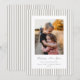 Una clásica tarjeta de vacaciones plana que presenta rayas delgadas greige y blancas, un mensaje de 'Feliz Año Nuevo' en una fuente de pluma de tinta tradicional con texto totalmente personalizable debajo, y una foto. La parte posterior tiene el mismo patrón de rayas, pero se puede cambiar fácilmente por una foto si lo prefiere. Disponible en diferentes colores y con diferentes mensajes de vacaciones en mi tienda.