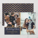 Esta moderna tarjeta vacacional tiene un lugar para 2 fotos y está escrita en un guión con letras a mano. Hay falsos bordes dorados y un patrón de chevron en la parte trasera.