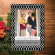 Elegante y moderno Elegante tarjeta plana de fotos de vacaciones de celosía con un delicado diseño de enlosado blanco y un fondo negro. Esta moderna y sencilla tarjeta de fotos se puede personalizar fácilmente con una foto y un saludo personalizado de los Navidades. Para obtener más opciones de personalización, haga clic en Personalizar. Fotografía © Storytree Studios, Stanford, CA