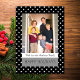 Brilla esta temporada con esta tarjeta de foto de Black Festive Stars Holiday. Con su preciada foto familiar rodeada por un divertido patrón de estrellas y una tipografía moderna y limpia. El alegre mensaje "Felices Fiestas" se combina con un diseño simple y elegante que mantiene el foco en tu foto y nombre de familia. Perfecto para enviar saludos navideños con temática estrella, este diseño combina calidez, personalidad y un toque de brillo de vacaciones. Una hermosa manera de compartir alegría, amor y luz con todos en tu lista. Fotografía © Storytree Studios, Stanford, CA