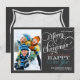 Divertidos y festivos Feliz Navidad con marco fotográfico sobre fondo negro de pizarra y elegante tipografía retro con letras caligráficas de escritura giratoria. Añade tus fotos familiares de vacaciones favoritas y personalizar el texto. Manera contemporánea de enviar felices saludos de vacaciones de invierno a todos tus amigos y seres queridos con un estilo vintage formal. Postal de correspondencia, invitaciones para fiestas de vacaciones y tarjetas de felicitación disponibles bajo petición. PCF13
