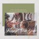 Tarjeta adaptable de la foto del día de fiesta que ofrece la escritura elegante y rayada detrás.