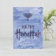 Un lavado del azul acuoso sirve como contexto sutil para un ilustracion texturizado del menorah y un texto feliz manchado de tinta, mano-indicado con letras de Jánuca. No olvide personalizar esta tarjeta del día de fiesta de la dos-foto con sus propias fotos y texto conocido. Añada su propio tacto especial con el "personalizar él" las opciones y cambie todo del color del soporte y de la fuente a la disposición a un mensaje personalizado en la parte posterior.
