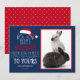Tarjeta plana de los días de fiesta del mascota de la foto de lúpulo linda del conejo.