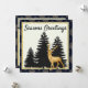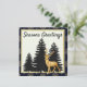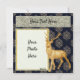 Moderna tarjeta plana de Navidades clásicos con ciervo Purpurina de oro y árboles de cuero negro. Tarjeta plana de saludos de temporada. Oro purpurina y cuero negro. Foto y texto editable.