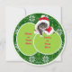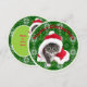 Tarjeta plana de Navidades redondos de gato. Gato lindo en Sombrero Santa en una tarjeta plana redonda con fondo de color blanco metálico y suéter verde. Tarjeta editable de texto y foto.