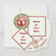 Tarjeta redonda plana de Navidades rojos de renos. El cuero rojo parece un reno una guirnalda en un fondo blanco. Tarjeta editable de texto y foto.