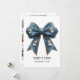Celebre sus recuerdos favoritos con esta tarjeta festiva plana de vacaciones con un encantador lazo azul adornado con muñecos de nieve y copos de nieve. La parte delantera destaca “¡Qué año!” mientras que la parte trasera incluye una plantilla personalizable de colaje de fotos del año y leyendas. Una forma alegre de compartir momentos destacados y deseos de vacaciones con familiares y amigos.