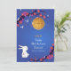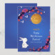 El fondo de gradiación azul bonito con luna de torta lunar y conejo es la tarjeta perfecta para enviar a desear a la gente un feliz Festival de Mediados de Otoño. Agregue su apellido o quítelo si lo prefiere. En blanco para tu saludo personal.