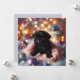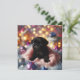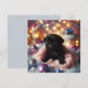 Tarjeta plana de vacaciones de 5,25" x 5,25 con un adorable cachorro de pug negro acurrucado en una manta acogedora, rodeado felizmente de adornos coloridos.