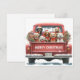 Festiva tarjeta plana de vacaciones de camión rojo