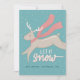 Una tarjeta plana de vacaciones/ Navidad no fotográfica y no denominacional que presenta letra a mano que dice "que nieve" y una ilustración caprichosa de un reno con bufanda en medio galope a través de la nieve. Envíe uno a todos los que usted tiene "ciervo" esta temporada de vacaciones!