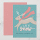 Una tarjeta plana de vacaciones/ Navidad no fotográfica y no denominacional que presenta letras a mano que dicen "que nieve" y una ilustración caprichosa de un reno con bufanda en medio galope a través de la nieve. Envíe uno a todos los que usted tiene "ciervo" esta temporada de vacaciones! Una caja de texto personalizable se encuentra debajo de la ilustración para su propio saludo complementario.