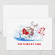 Tarjeta plana de vacaciones de San Valentín de alce en moto de agua 5x7. Divertido alce en una moto de agua haciendo olas de corazones rojos. "Sé mi San Valentín" está en un corazón grande.