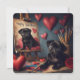 Tarjeta plana Día de San Valentín Pug - Celebra el amor con esta encantadora tarjeta de San Valentín que incluye un pug negro dulce. Perfecto para los amantes del pug o para los amantes de los dibujos animados, esta tarjeta le da un toque encantador al mensaje de San Valentín.