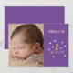Festiva tarjeta púrpura flores de margarita de 2 meses con