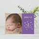 este bonito diseño único presenta un nombre personalizado de fondo de berenjena malva, de dos meses de antigüedad, con un diseño amarillento adorable de flores/daisies y una foto personalizado del bebé