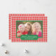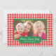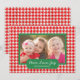 Comparta sus deseos del día de fiesta estos navidad sazonan con una tarjeta plana personalizada única de la foto. Características del este diseño festivas una frontera roja y blanca del houndstooth junto con un marco verde para su imagen junto con un área para el sentimiento que lee la "paz, amor, alegría". Usted puede también personalizar con su apellido. La parte posterior de la tarjeta se adorna con un modelo rojo y blanco encantador del diente de perro. ¡Substituya la foto mostrada por sus la propia para la que está de un diseño bueno que su familia y amigos adoren! Diseñado por el © Susan Coffey del artista. Estudios de Storytree del © de la fotografía, Stanford, CA.