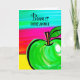Brillante y colorida tarjeta de felicitación Rosh Hashanah escrita en francés. Bonne et Douce Annee en la portada. Shana Tova escribió adentro. manzana verde, Granny Smith manzana en la cubierta con fondo pálido. Arte, imagen y verso copyright © Shoaff Ballanger Studios.