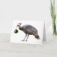 Un pavo con un sombrero de Santa trae un resplandeciente adorno verde. Esta tarjeta de diversión combina Navidades y Acción de Gracias