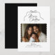 Tarjeta simple para Navidades de fotos en vieiras. Este diseño es la combinación perfecta de lo caprichoso y lo sencillo. El arco dibujado a mano, emparejado con un texto de estilo manuscrito, le da un toque retro, mientras que la forma de la foto en forma de vieira mantiene el diseño general moderno y fresco. Personalice su foto, año, línea de firma y nombres. ¡TODOS LOS COLORES SON EDITABLES! Elija los colores del fondo, el texto y el elemento de diseño para complementar la foto, convirtiéndola realmente única en su clase. © Kimbellished, LLC
