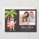 La tarjeta de Navidad caliente hawaiana tropical de la foto de familia de los deseos de santa de la pizarra de moda y popular que ofrecía un santa que ganduleaba lindo debajo de una palmera adornada con las luces y los ornamentos de navidad fijó en un fondo moderno de la pizarra de la pizarra elegante. ¡Apenas personalice con su información y añada una foto de su familia hermosa y usted es todo fija para ir!