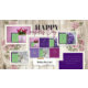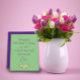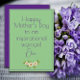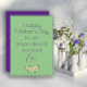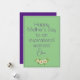 Tarjeta de felicitación del Día de la Madre. La parte delantera es de color púrpura y la parte trasera es de color verde ensalada. Puedes personalizar las felicitaciones y deseos como desees. El diseño de la tarjeta está complementado con delicadas flores de acuarela.