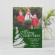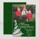 Una tarjeta moderna de la foto del día de fiesta que ofrecía un árbol de navidad de plata remató con una estrella en un fondo verde. ¡Personalice fácilmente con su propia foto y texto! Los diseños son ilustraciones/gráficos impresos plano - RELIEVE METALIZADO PLATEADO NO REAL. Para volver a clasificar según el tamaño y colocar su foto, haga clic en el "PERSONALIZAR ÉL" botón.