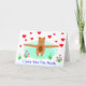 El amor está en el aire. Este oso marrón estira su mano realmente de largo para decir "te amo este mucho". Los corazones rojos están flotando alrededor de él. Él está listo para dar mucho de amor al beneficiario de esta tarjeta. Una tarjeta maravillosa para expresar su amor su especial.