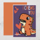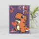 Tarjeta divertida y linda del Día de San Valentín para niños con una ilustración de un T-Rex naranja de dibujos animados sosteniendo un corazón rojo sobre un fondo púrpura con las palabras "Te elijo" regalo ideal para niñas y niños.