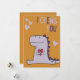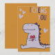 Tarjeta de San Valentín divertida y linda para niños con una ilustración de un T-Rex de dibujos animados púrpura sosteniendo un corazón rojo sobre un fondo amarillo oscuro con las palabras "Te elijo" regalo ideal para niñas y niños.