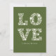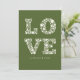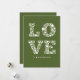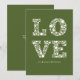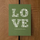 Elegante tarjeta de bienvenida plana de moda con letras apiladas que escriben "LOVE" en patrones florales y geométricos blancos sobre un fondo de color rico. Texto de mensaje personalizable. Perfecto para El día de San Valentín, Día más dulce, aniversario boda o cualquier día! Disponible en una selección de colores de fondo vibrantes. También disponible como tarjeta plegada.