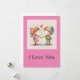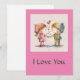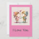 Lento tarjeta de San Valentín que dice: Te amo. La imagen muestra a un niño y un chica tomándose de la mano con el corazón entre ellos. El reverso está en blanco para escribir.