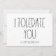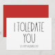 Te tolero, una tarjeta El día de San Valentín graciosa y sarcástica para declarar tu amor.