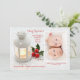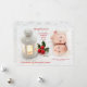 Estrellas plateadas purpurina en la luz de la lámpara y un grupo de bolas de Navidad reflejan un suave resplandor en esta encantadora tarjeta fotográfica de vacaciones. Presenta la foto de tu bebé para que sea tuya.
