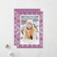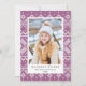 Elegante tarjeta de fotos de vacaciones con un patrón de suéter morado y blanco con marcadores de posición de fotos y texto.