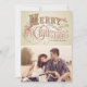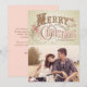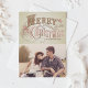 Tarjeta fotográfica navideña de personalizable con tipografía occidental sobre fondo falso de papel de época.
