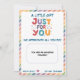 Brillante y alegre tarjeta de apreciación del profesor que presenta la frase "Just For You" en alegres colores arcoiris, rodeado de lindas estrellas y enmarcado con un borde de rayas pastel. Perfecto para añadir una tarjeta de regalo y mostrar gratitud a tu profesor favorito. Este divertido diseño es ideal para la Semana de Apreciación del Profesor, gracias de fin de año, o cualquier momento especial cuando quieras decir "¡Eres increíble!" A los niños y padres les encantará regalar esta pequeña y feliz tarjeta llena de corazón. Utilícelo como un gesto reflexivo en el aula, un regalo de estudiante a profesor o parte de un paquete de apreciación de la OPT. Ideal para profesores de preescolar, elemental y de casa.