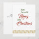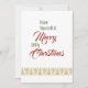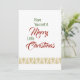 Estas letras clásicas de la canción aparecen en la parte delantera de esta tarjeta. Envuelto en un fondo blanco, con las palabras Feliz Navidad en un gran tipo de letra roja. El texto restante se encuentra en una fuente de tipo verde. En la parte inferior de la tarjeta hay árboles de Navidad contemporáneos de colores dorados, que forman un borde. En la parte posterior de la tarjeta hay un cuadro de texto que le permite agregar su propio mensaje de vacaciones. Si lo prefiere, puede eliminar el cuadro y escribir su mensaje.