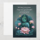 Encontrará tranquilidad interior con esta hermosa tarjeta azul y gris con estatua de Buda y flores rosas. El texto dice 'Deseándote paz, felicidad, buena salud y prosperidad', haciendo de esta carta perfecta para cumpleaños, celebraciones, o como una carta para recuperarte del ánimo de alguien en tiempos difíciles. La serena imagen de Buda y la relajación de las flores rosadas ayudarán a dar un sentido de tranquilidad y atención a cualquier destinatario. El interior de la tarjeta está en blanco, lo que le permite personalizar de su mensaje y añadir un toque personal. Comparte el regalo de la atención y envía esta pacífica tarjeta de saludo a alguien especial hoy.