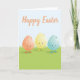 Tarjeta de felicitación con tres, sonriendo, caracteres del huevo de Pascua. Las palabras "Pascua feliz" son adaptables.